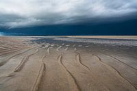 Koop dit abstracte kunstwerk Zonsopgang op het strand van Texel met een naderende stormwolk van Sjoerd van der Wal Fotografie op canvas, aluminium dibond, (ingelijste) fotoprint, behang en ArtFrame, op maat geprint in Fine-Art kwaliteit.