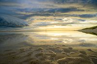 Zonsopgang op het strand van Texel met een naderende stormwolk over de Waddenzee op de noordpunt van het eiland met uitzicht op de Waddenzee en Vlieland.