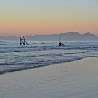 Landschap met een prachtige zonsopgang over False Bay in Strand