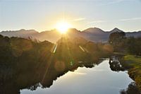Landschap met zonsopgang over de Lourensrivier in Strand