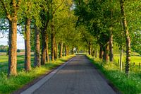 Vroege zonsopgang tijdens een mooie lentedag over de Zwartendijk, de oude Zuiderzeedijk in de IJsseldelta bij Kampen in Overijssel Nederland.