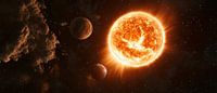 Op de foto ontvouwt zich een fascinerend kosmisch schouwspel: de stralende zon, omringd door mysterieuze planeten, betovert de kijker. De levendige kleuren en pulserende lichtstralen geven de ruimte energie en inspiratie. Dit kunstwerk is perfect voor een kantoor om creativiteit en dorst naar kennis aan te moedigen.