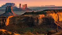 Zonsopkomst met het uitzicht vanaf Hunt's Mesa in Monument Valley, in de Navajo Nation op de grens van Utah en Arizona in het Amerikaanse zuidwesten!