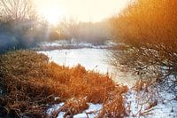 Zonsopgang bij een vijver in de winter
