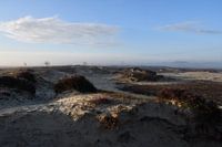 Het ochtendlicht maakt de kleuren zachter dan gebruikelijk. De nevel is in de verte nog zichtbaar. Tussen de zandduinen zijn de sporen van menselijke activiteit zichtbaar. Wandelaars en mountainbikers doorkruisen dit terrein regelmatig, Deze ochtend is het er stil.