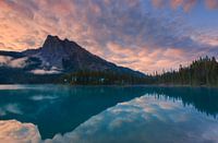 Zonsopkomst bij Emerald Lake met het eerste licht op de Canadese Rockies.