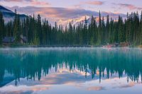 Zonsopkomst bij Emerald Lake met het eerste licht op de Canadese Rockies.