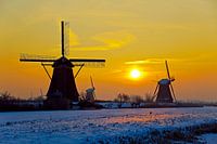 Zonsopkomst Kinderdijk in de winter van Anton de Zeeuw