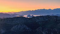 Een 16:9 foto van een zonsopkomst gezien vanaf Mirador del Fitu. Het is een van die weinige plekken die een spectaculair 360 graden uitzicht biedt in het landschap van Asturië.