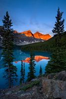 Moraine Lake is een gletsjer gevoed meer in Banff National Park, 14 kilometer (8,7 mijl) buiten het dorp Lake Louise, Alberta, Canada. Het is gelegen in de Valley of the Ten Peaks.