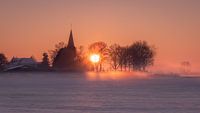Prachtige, sprookjesachtige zonsopkomst in de winter in Persingen, vlakbij Nijmegen.