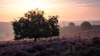 Een mooie mistige zonsopkomst op de Posbank, Rheden, Gelderland, Nederland.