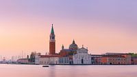 Zonsopgang in Venetië met het uitzicht vanaf het beroemde San Marco plein met uitzicht naar de San Giorgio Maggiore, Italië