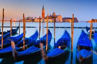 Zonsopgang in Venetië met het uitzicht vanaf het beroemde San Marco plein met de Gondels en uitzicht naar San Giorgio Maggiore, Italië