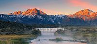 Zonsopgang op de Sierra Nevada gezien vanaf Hot Creek. Hot Creek, een stroom in Mono County in het oosten van Californië, in het westen van de Verenigde Staten. Het bevindt zich in het Inyo National Forest.