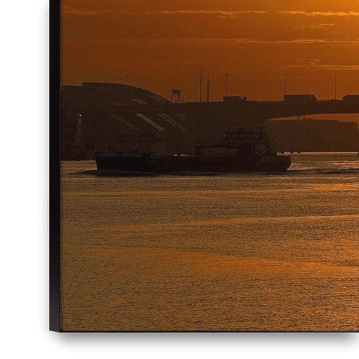 Koop de Rotterdam foto Zonsopkomst Van Brienenoordbrug te Rotterdam van Anton de Zeeuw als print op canvas, aluminium dibond, (ingelijste) fotoprint, behang en ArtFrame. Voor jou op maat geprint in Fine-Art kwaliteit.