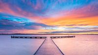 Bij het Veerse gatdam ligt een mooie steiger vanwaar je een mooie inleidende lijn heb voor een zonsopkomst.