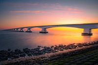 Een prachtige zonsopkomsten fantastische kleuren bij de Zeelandbrug in Zeeland.