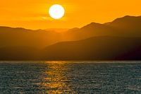 Gewoon voor onze deur. Waanzinnig uitzicht met schitterde zonsopgangen elke ochtend. Deze ochtend wat minder dikke bewolking. Heerlijk lichtval over de bergen aan de overkant waardoor je mooi de silhouetten van de Bergen ziet.