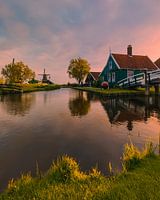 Zonsopkomst op de Zaanse Schans, een bekende toeristische hotspot in Zaandijk, in de Nederlandse provincie Noord-Holland, niet ver van Amsterdam.