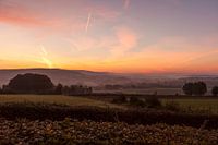 Zonsopkomst over een nevelig Zuid-Limburg bij Epen