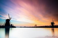 Eind januari in de vroege ochtend de zonsopkomst in Kinderijk de molens gefotografeerd. Met de langere sluitertijd heb ik rust in het water en wat dramatiek in lucht gecreëerd.
