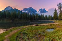 Zonsopkomst bij het meer van Antorno (Lago d'Antorno), een klein bergmeer in de Italiaanse Dolomieten. Het ligt in het noorden van de provincie Belluno nabij de plaats Misurina op 1866 meter hoogte.