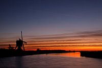 Mooie gelaagde wolken een half uur voor zonsopkomst bij de Broekmolen in de Alblasserwaard.