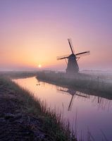 Koop de foto Zonsopkomst bij de Hempenserpoldermolen tijdens een mistige ochtend van Thea.Photo op canvas, aluminium dibond, (ingelijste) fotoprint, behang en ArtFrame, op maat geprint in Fine-Art kwaliteit.