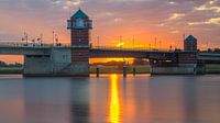 Een 16:9 foto tijdens een zonsopkomst bij de Jann-Berghausbrug. Als onderdeel van rijksweg 436 overspant hij de Eems bij de stad Leer (Oost-Friesland) tussen de wijken Leerort en Bingum. Naast de Emstunnel (A 31) is dit het enige permanente kruispunt in de benedenloop van de Eems en vormt daarmee een belangrijke wegverbinding tussen Oost-Friesland en Nederland.