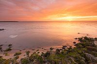 De zon komt op boven de Dollard bij de Punt van Reide, provincie Groningen.