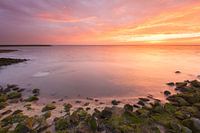 De zon komt op boven de Dollard bij de Punt van Reide, provincie Groningen.