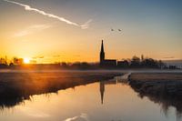 Echt een Hollandse foto. De ganzen die wakker worden en hun eerste vluchtje gaan maken. De mist die er nog een beetje hangt en de zon met de reflectie in het water maken deze foto echt tot een pracht foto.