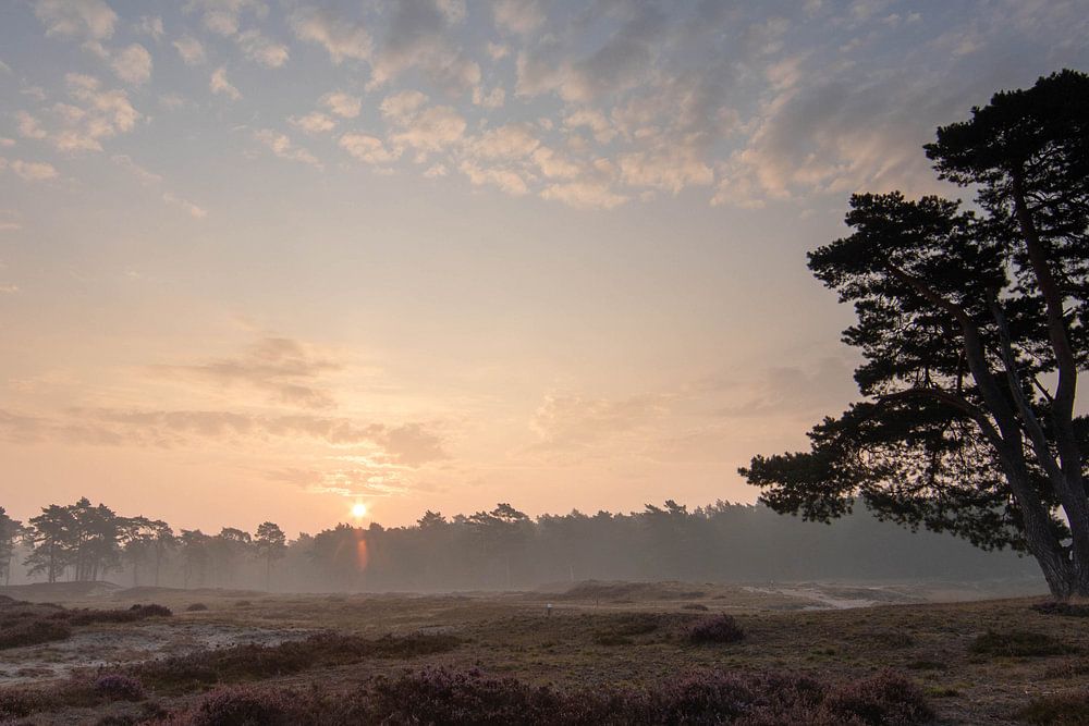 Zonsopkomst bij de eenzame boom op de zandvlakte!