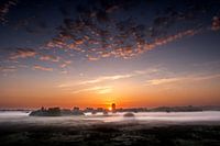 Zonsopkomst bij de Bossche Broek in Den Bosch, met het provinciehuis van Noord-Brabant op de achtergrond