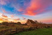 Een mooie zonskomst boven een van de bekendste schuurtjes, ook wel schapenboot geheten, op Texel.