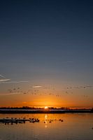 Zonsopkomst bij het water, een prachtig gezicht in dit natuurgebied in Friesland, waar deze foto gemaakt is. Dit is bij de Alde Feanen bij Earnewoude.
