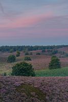 Zonsopkomst boven de bloeiende Heide op de Posbank in het Veluwezoom natuurgebied.