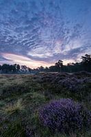 Zonsopkomst tijdens het begin van het heide seizoen op nationaal park Heidestein op de Utrechtse Heuvelrug nabij Driebergen Zeist Austerlitz.