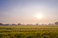 Zonsopkomst boven veld in Hasselt van Johan Vanbockryck