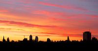 Deze foto heb ik in alle vroegte genomen op een dakterras achter het Museumplein. Op deze panorama-foto zijn de prachtige ochtendgloren van de zonsopgang te zien en kun je goed de contrasterende silhouetten waarnemen van de kenmerkende gebouwen in de Pijp (o.a. de kerk en het Okura Hotel), Amsterdam Oost en het Amstelstation.
