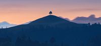 Een 2:1 foto van een eenzame Lindeboom op een heuveltop op vroege zomerochtend voor zonsopkomst in het Emmental, een dal in centraal Zwitserland, in het kanton Bern.