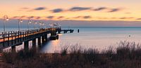 Zonsopgang op de pier van Göhren aan de Oostzee, op het eiland Rügen. Göhren is een gemeente in het district Vorpommern-Rügen, in Mecklenburg-Vorpommern, Duitsland.