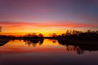 Zonsopkomst in Nederland. Dit is de plek waar de Vecht vanuit Duitsland Nederland binnenkomt, tussen Coevorden en Gramsbergen (de Haandrik).