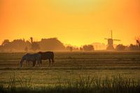 Een gouden zonsopkomst in Nederland. De foto is gemaakt op de Fransekade in Schoonhoven. Op de achtergrond staat windmolen Bonrepas.