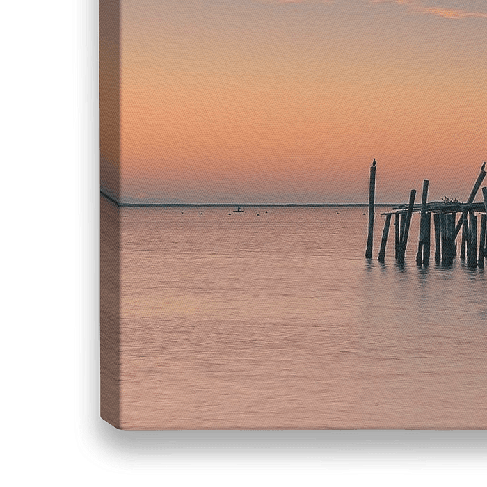 Een 16:9 foto van een zonsopkomst bij de oude houten pier in Provincetown, door velen in de regio ook "P-Town" genoemd, een plaats gelegen op het uiterste puntje van het schiereiland Cape Cod in de staat Massachusetts, in het noordoosten van de Verenigde Staten.