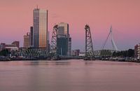 De skyline van Rotterdam vanaf de Maasboulevard met de Hef en de Maastoren.