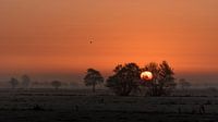 Deze foto is aan de Rechterensweg bij Rouveen genomen tijdens een fantastatische zonsopkomst. De mist zorgde voor een prachtige oranje gloed over de foto.