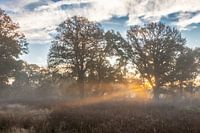 Een schitterende zonsopkomst in het mooie en wijdse Westerwolde. Schitterende vergezichten met ideale omstandigheden, waaronder een laagje grondmist zorgen voor dit mooie tafereel. Wat denk je, zal het mooi lijken bij jou aan de muur?