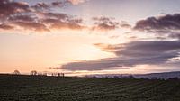 Heldere zonsopkomst boven de velden bij Wijlre in het Zuid-Limburgse Heuvelland op een koude herfstochtend (Nederland).